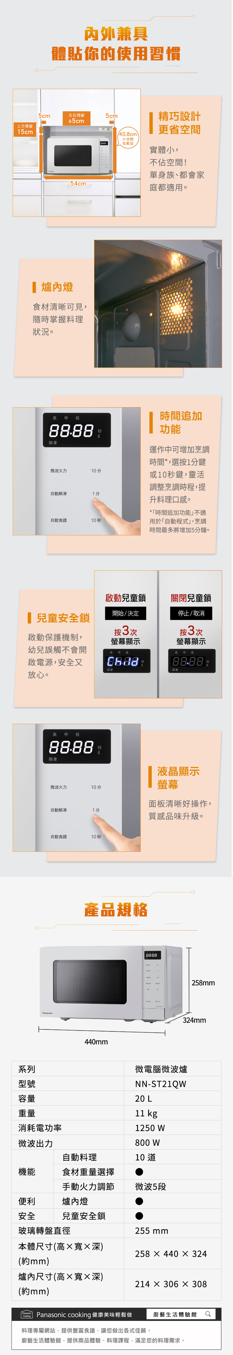 【Panasonic】20L微電腦微波爐 (NN-ST21QW)