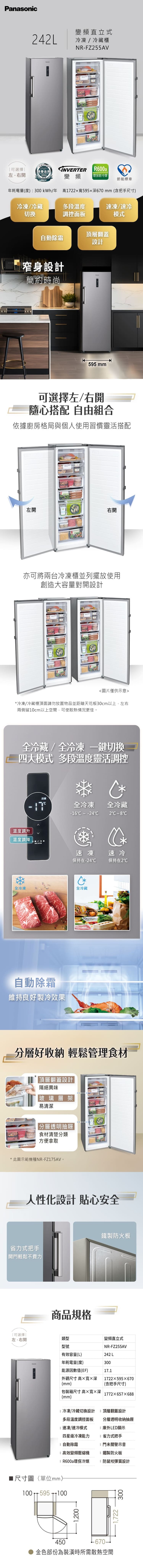 - 【Panasonic】242L直立式冷凍櫃(NR-FZ255AV)