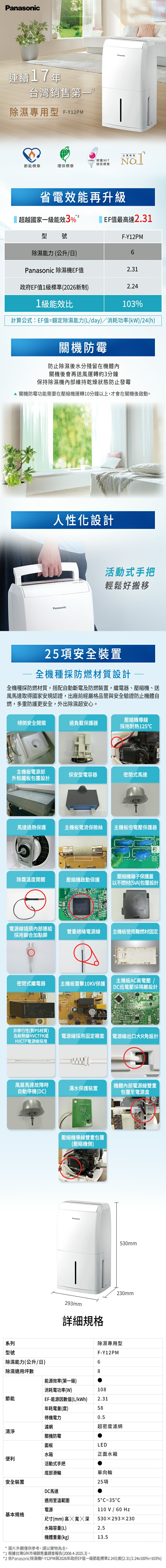 【Panasonic】6公升除濕專用型除濕機F-Y12PM