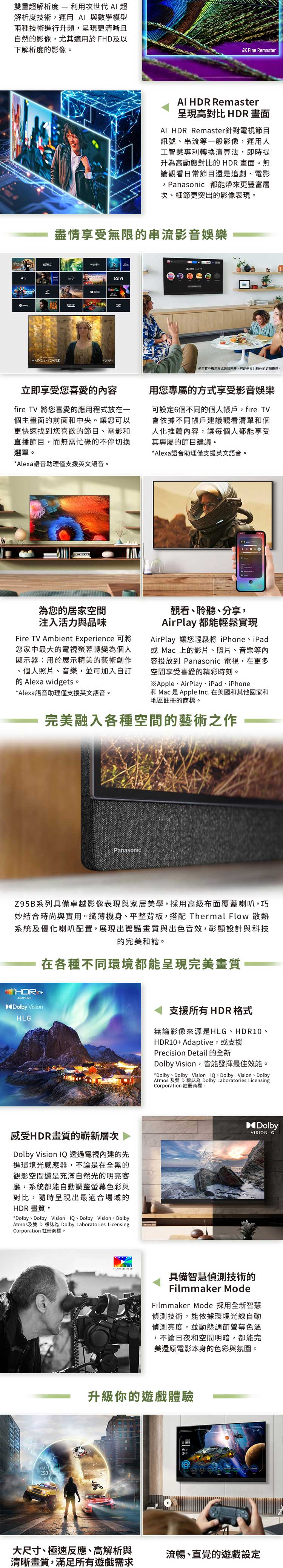 - 【Panasonic】65吋4K OLED HDR智慧顯示器(TV-65Z95BGT)