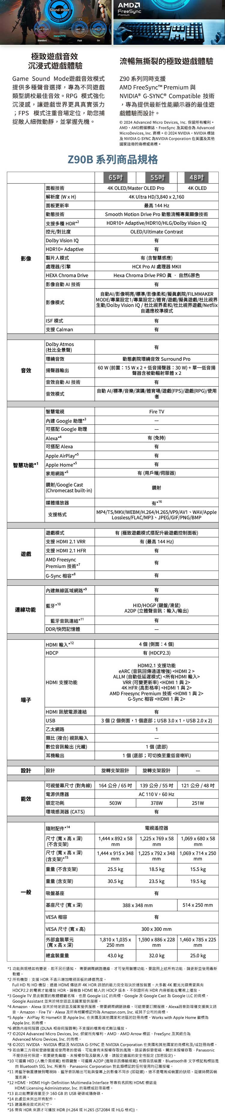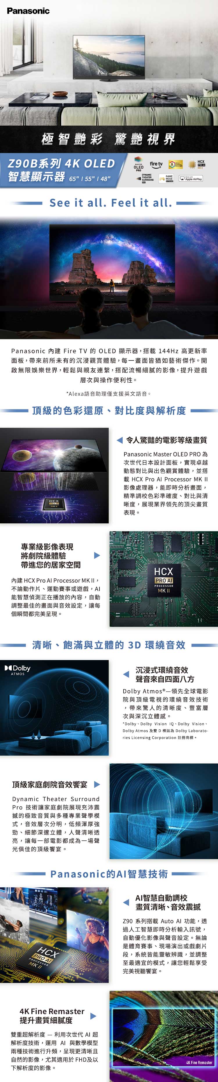 - 【Panasonic】48吋4K OLED HDR智慧顯示器(TV-48Z90BGT)