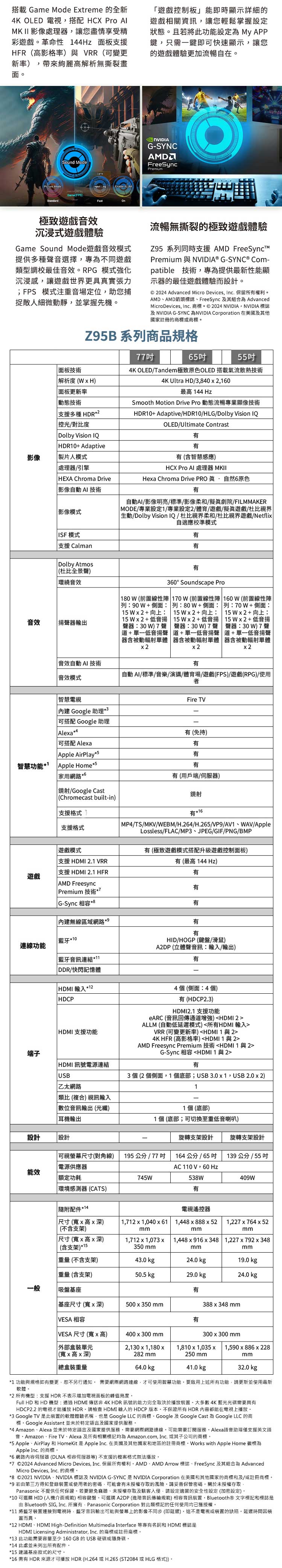 - 【Panasonic】55吋4K OLED HDR智慧顯示器(TV-55Z95BGT)