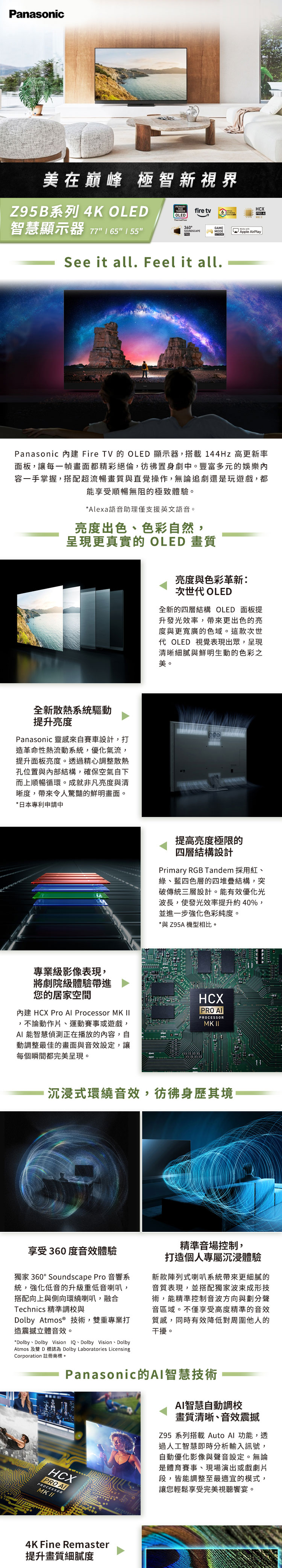 - 【Panasonic】77吋4K OLED HDR智慧顯示器(TV-77Z95BGT)