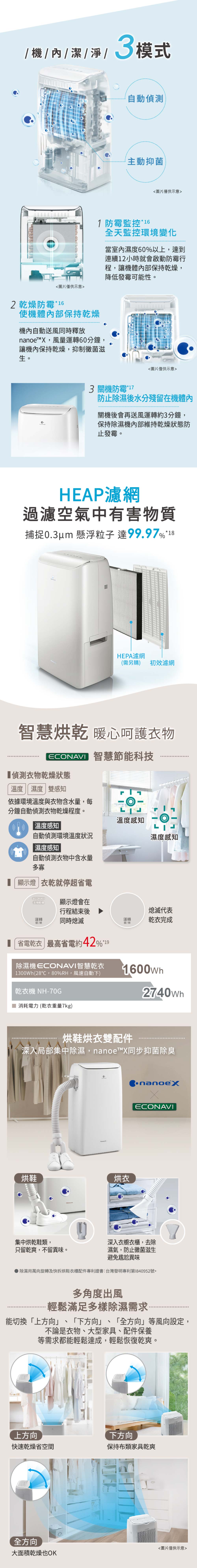 除濕能力18公升/日(室溫27°C/相對濕度60%)