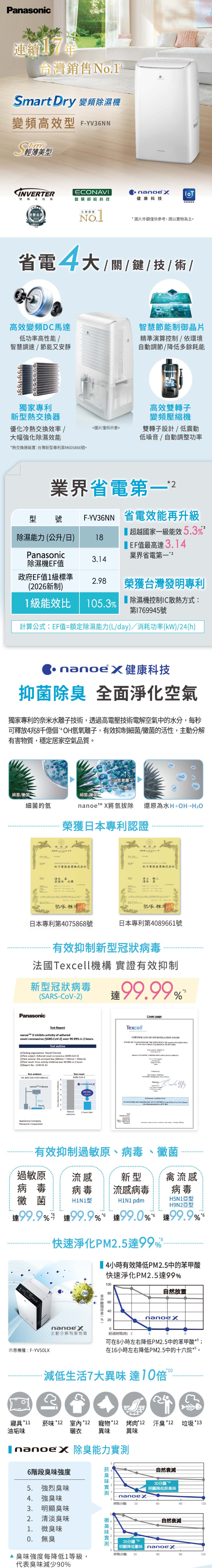 【Panasonic】18公升變頻高效型除濕機F-YV36NN