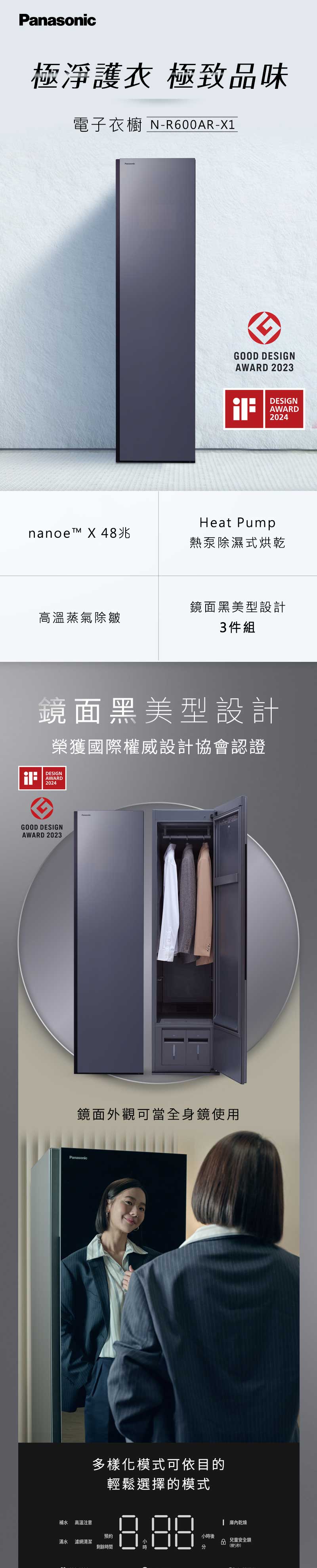【Panasonic】鏡面黑電子衣櫥 (N-R600AR-X1)